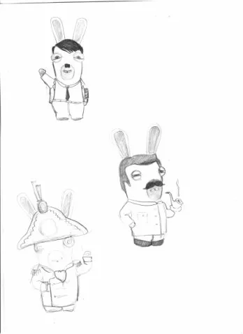 Теперь руки- здесь особых сложностей возникнуть не должно, ведь варежку рисовать достаточно просто)их можно нарисовать как в начале, так и в конце , в зависимости от вашей задумки.Я нарисую просто махающего рукой кроля с хитрыми глазенками)