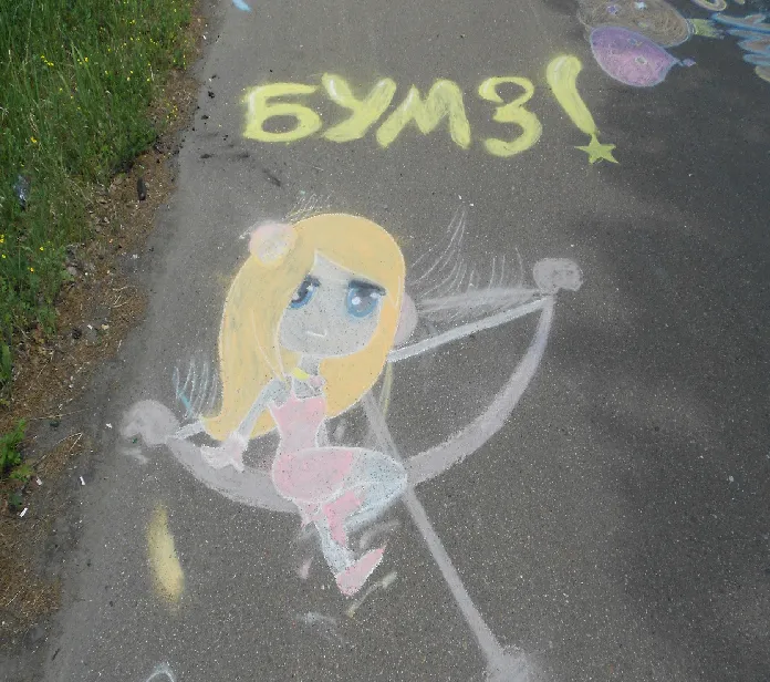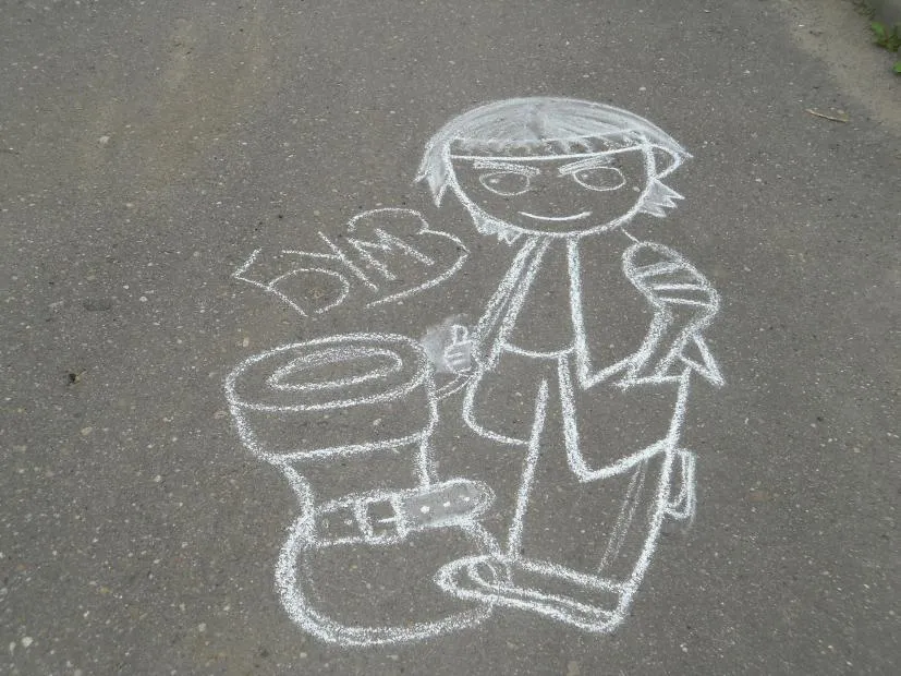 Три милых девушки не пожалели пастели на изображение короля гулу на двери. Это пока единственная работа сделанная на стене и мне кажется, что такой ракурс удачнее.