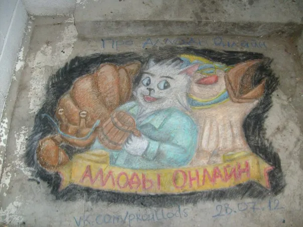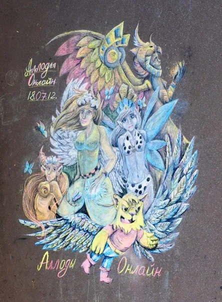 Однако хватит предисловий, перейдем прямо к делу. Совсем недавно в официальной группе «Аллодов Онлайн» закончился конкурс рисунков на асфальте, в котором главными инструментами художников были цветные мелки. Столько разнообразных картин оставили участники на проезжей части и стенах домов недоброжелателей! Предлагаем вам ознакомиться с самыми выдающимися творениями рембрандтов нашего времени.