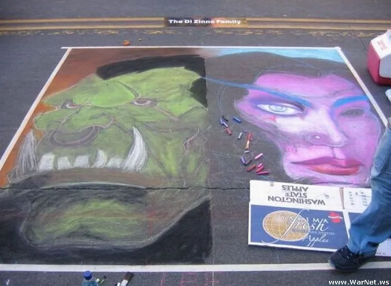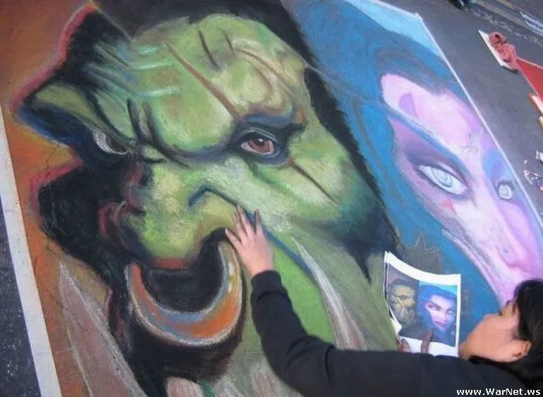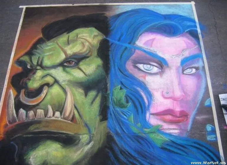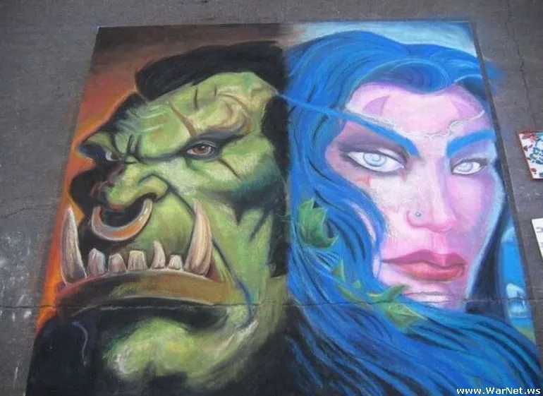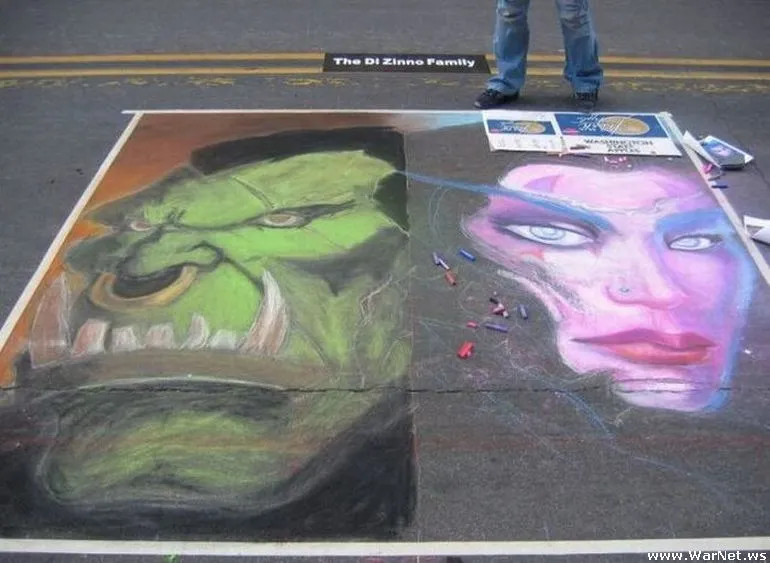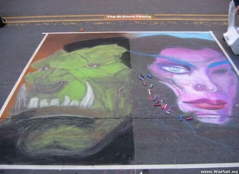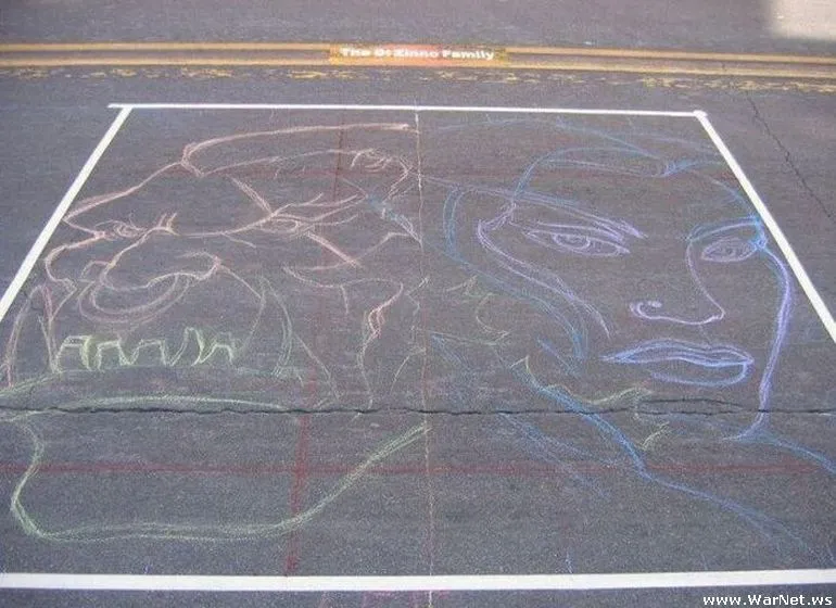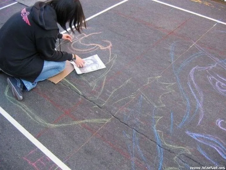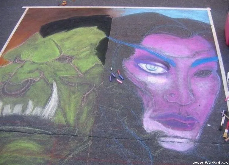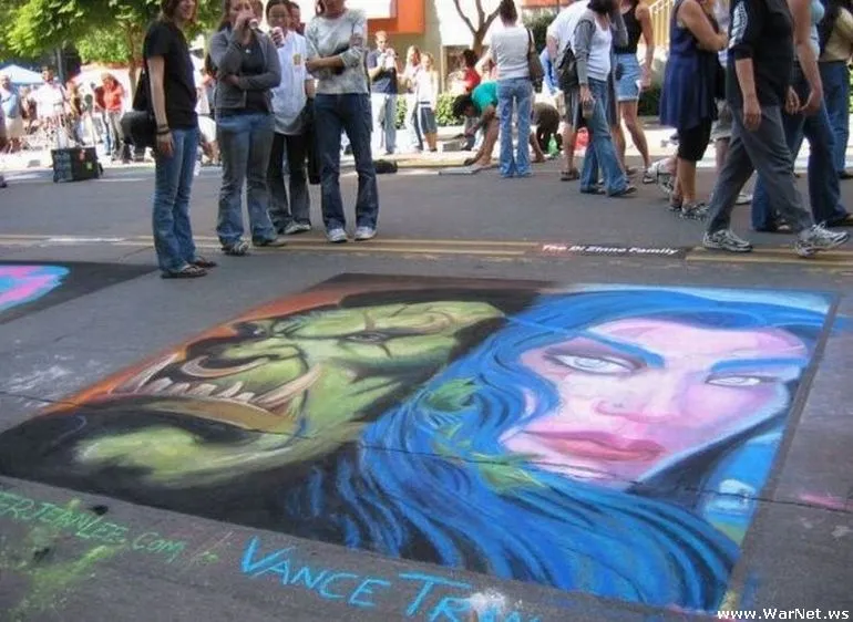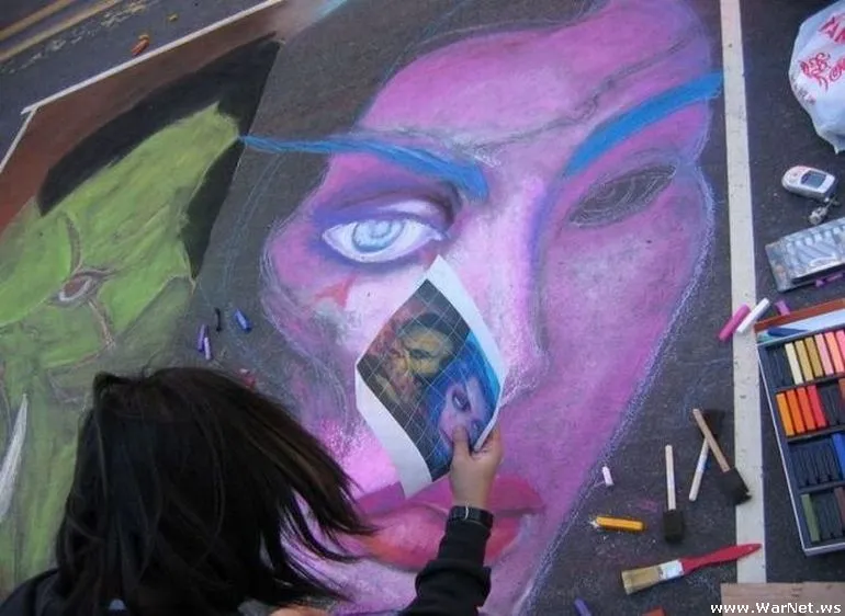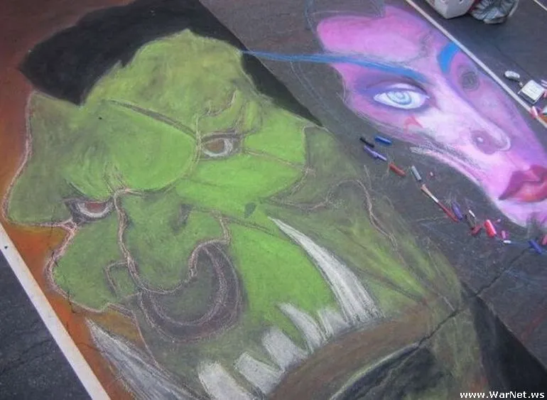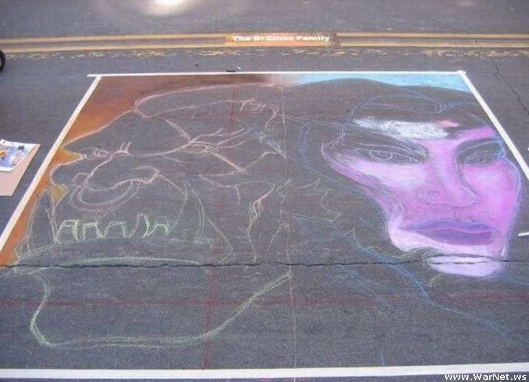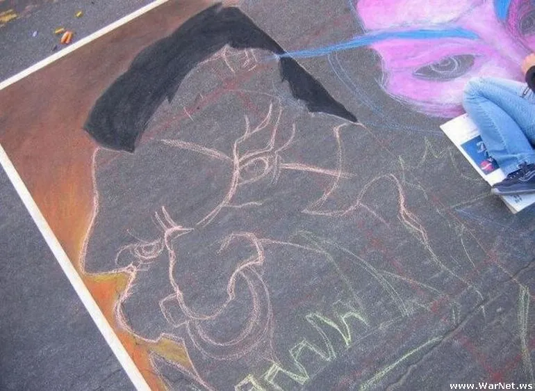 убой! никогда не думал что мелками можно добиться такого результата...гг... и асфальт там наверно специфический))) да,с эльфийкой чтото не так,помоему с размером глаз чуть обшиблась.интересно где же это такие креативные тусовки устраивают? ))