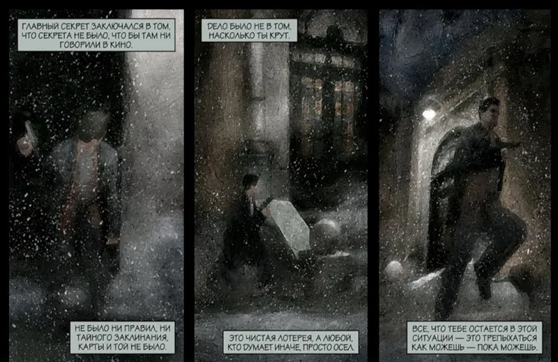 Зима и коварные морозы были отличной декорацией к происходившим событиям. Теплые ручьи пламени растапливали снег, темная кровь окрашивала его в цвета смерти. Пустынные улицы становятся свидетелями кровавой резни. В погоне за возмездием, Макс теряет чувство страха, которое возвращается к нему только в галлюциногенных видениях, которые продолжают показывать Максу смерть снова и снова, словно заевшая пластинка, доводящая в своих бесконечных циклах до тошноты. Жажда мести продолжала нашептывать, упорно перебивая тошнотворные галлюцинации, о незаконченном деле. Смертельная доза наркотика? Ха! Лучше бы эта стерва пустила ему пулю в лоб, было бы надежней.