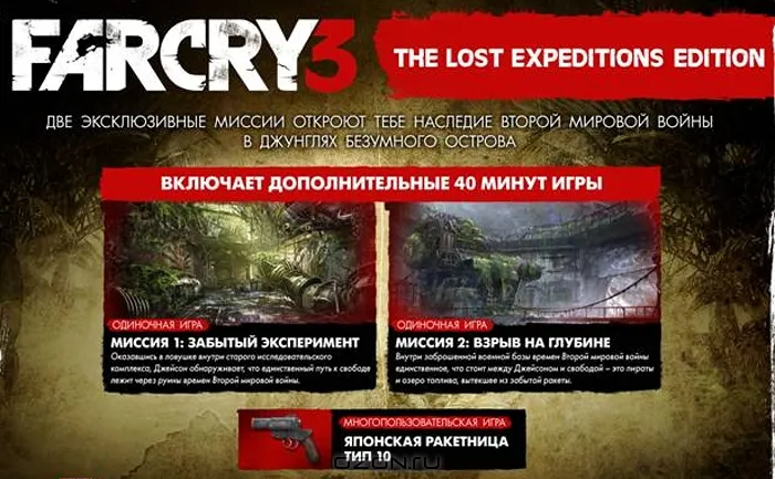 2 эксклюзивные миссии для однопользовательской игры откроют тебе наследие второй мировой войны в джунглях-безумного острова: миссия 1: "Забытый эксперимент" и миссия 2: "Взрыв на глубине".