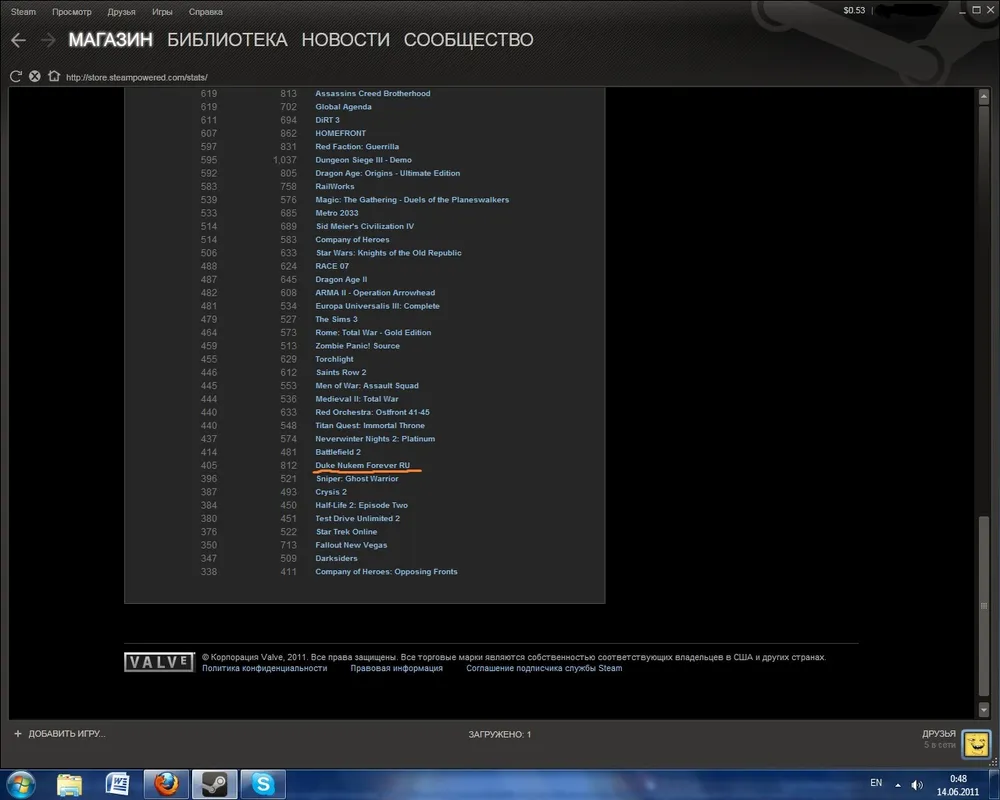 Российское издание Duke Nukem Forever в статистике Steam