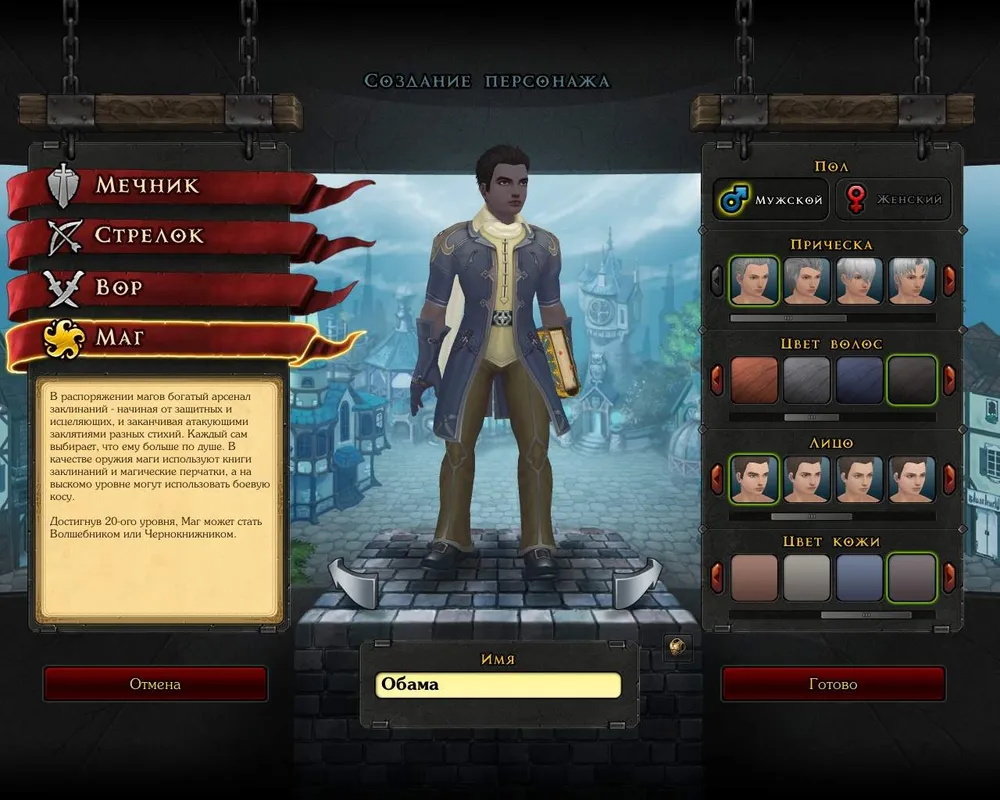 4 класса, 4 начальных локации. Выбор стандартный – воин, маг, вор, лучник. У каждого - свой путь развития.