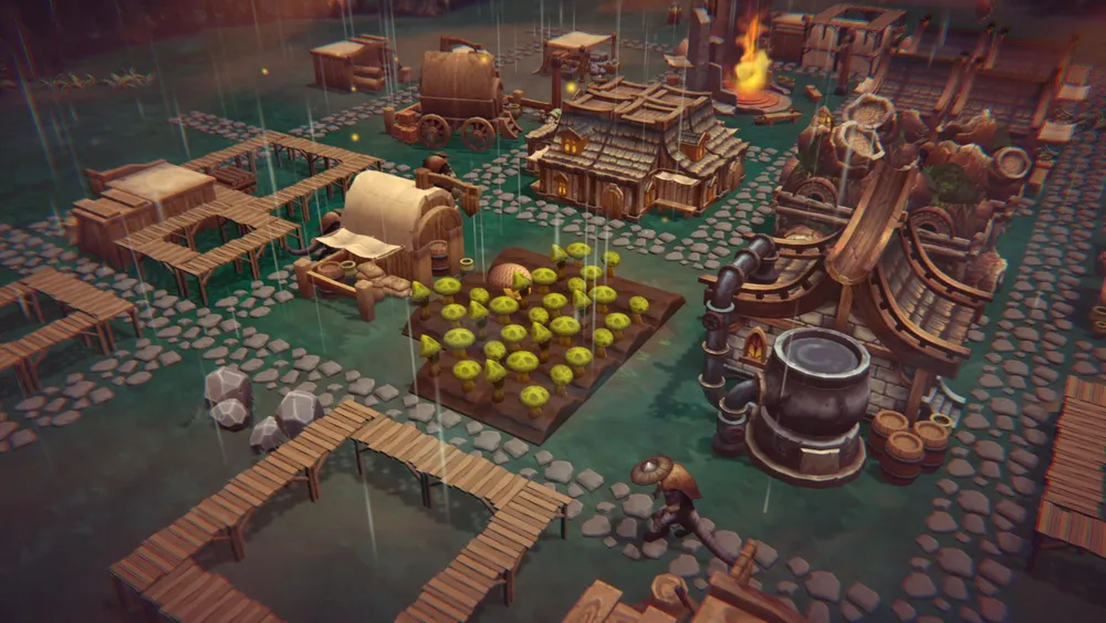 - Атмосфера фантастического апокалипсиса. Постройте поселение и поддерживайте живительный огонь (привет, Frostpunk!) в условиях природного катаклизма — в игре ожидаются перманентные осадки в виде дождя. На окраинах вас ждут руины древней цивилизации с её реликвиями. Отправитесь ли вы за великими технологиями сломя голову или будете обдумывать каждый свой шаг? Дожди — ваш друг и одновременно враг, сможете ли вы выжить, воспользовавшись знаниями древних?