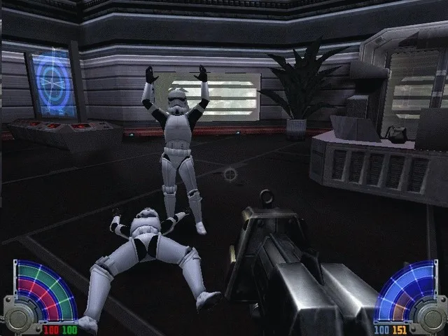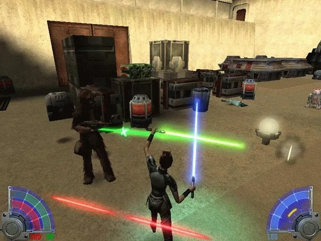 Жанр игры определить довольно сложно. В основном вам придется сражаться, пользуясь видом от третьего лица: только так можно управляться со световым мечом, основным оружием в игре. Классический ”вид из глаз” будет доступен, если выбрать другой тип вооружения, но делать это придется крайне редко (хотя, зачастую, и не без пользы).