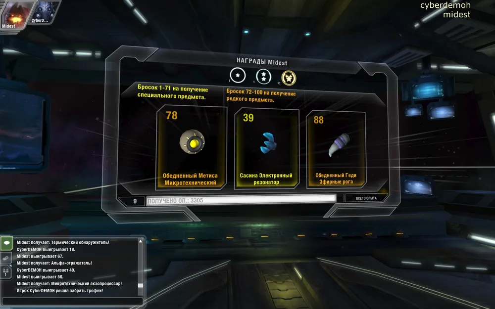 По возвращению с уровня на корабль можно забрать трофеи. На основе полученных вами медалей подсчитывается вероятность выпадения редких и даже легендарных предметов. Количество же предметов зависит от того, сколько уровней вы прошли в данной цепочке. Раз в день вероятность выпадения редких предметов повышает "ежедневный бонус".