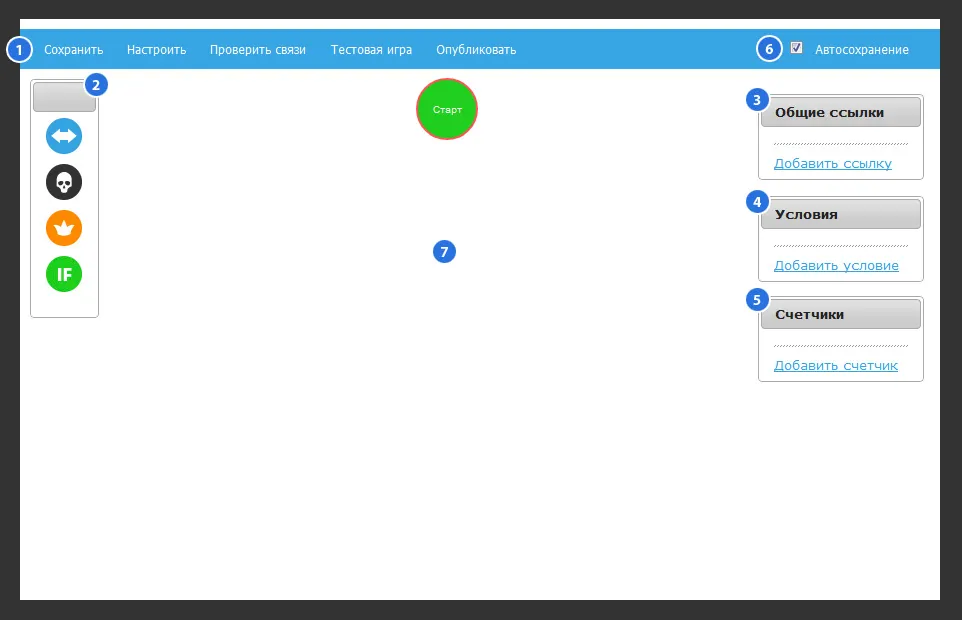 6. Автосохранение.Если у вас медленный интернет, советуем отключить эту функцию, что бы конструктор реже обращался к серверу.