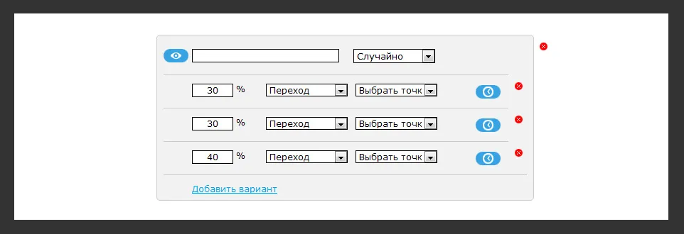 По клику на такую ссылку в игре случайным образом (в зависимости от распределения вероятности, заданной в конструкторе) выполняется то или иное действие.