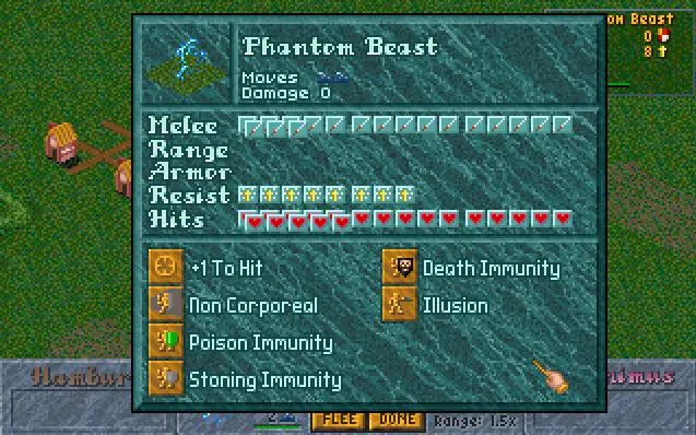 А вот этот милый господин вызывает у бронированных монстров и героев не просто нервный тик, а панический ужас – обладая всё тем же бонусом иллюзии, как и воины, он к тому же очень, очень, ОЧЕНЬ больно бьёт. А неплохая живучесть и скорость в две клетки позволяет дойти до врага и ударить хотя бы разок. Три-четыре иллюзорных зверя способны убить практически кого угодно. Но они не менее, чем иллюзорные воины, уязвимы к обстрелу издалека, ведь у иллюзий брони нет вообще.