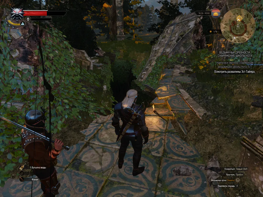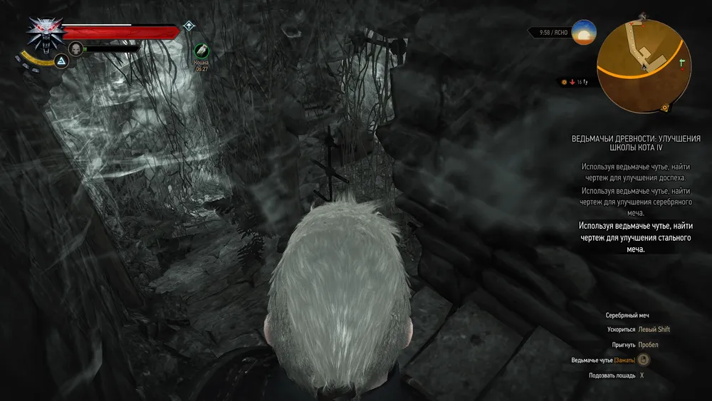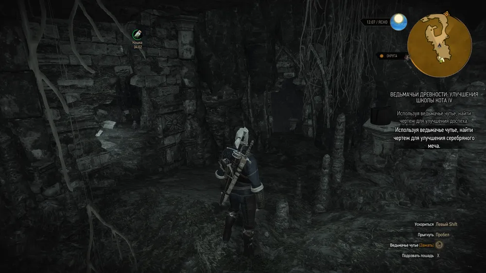 Далее просто бегите вперед. Вы упадете с небольшого уступа вниз и увидите дорогу к нужной нам пещере. На входе, как я и говорил, будет иллюзия. Нажав "Е" Геральт использует глаз Нехалены и вход в пещеру откроется.