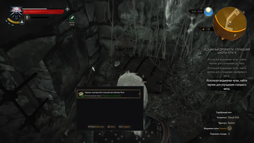 В первой пещере все довольно просто. Нужно разрушить стену с помощью знака Аард и следовать до самого конца. Там будут стоять два сундука, в одном из который вы найдете чертеж.