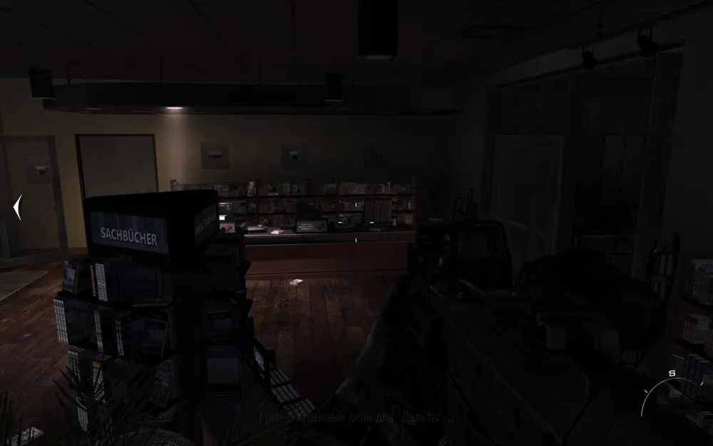 - 3. Спустившись на улицу и оказавшись у разбившегося вертолета, идите в магазин напротив — Trivo Buchhandlung. За стойкой у дальней стены будет еще один компьютер.