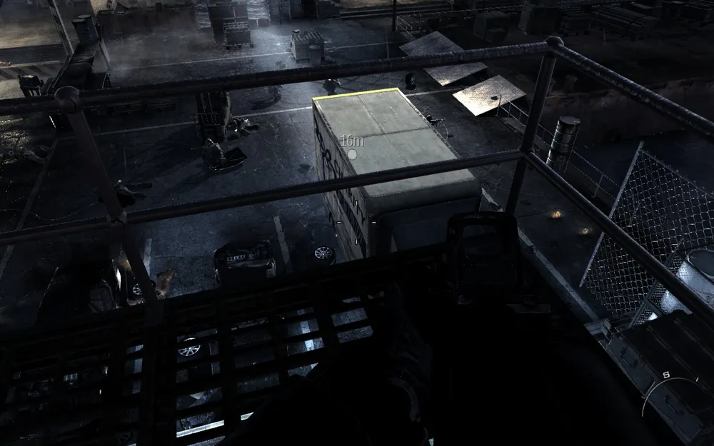 - 2. Когда вам нужно будет открыть двери кузова грузовика, не делайте этого. Пройдите вправо, взберитесь по лестнице и вернитесь поверху к площадке с грузовиком. Входите в комнату и забирайте компьютер.