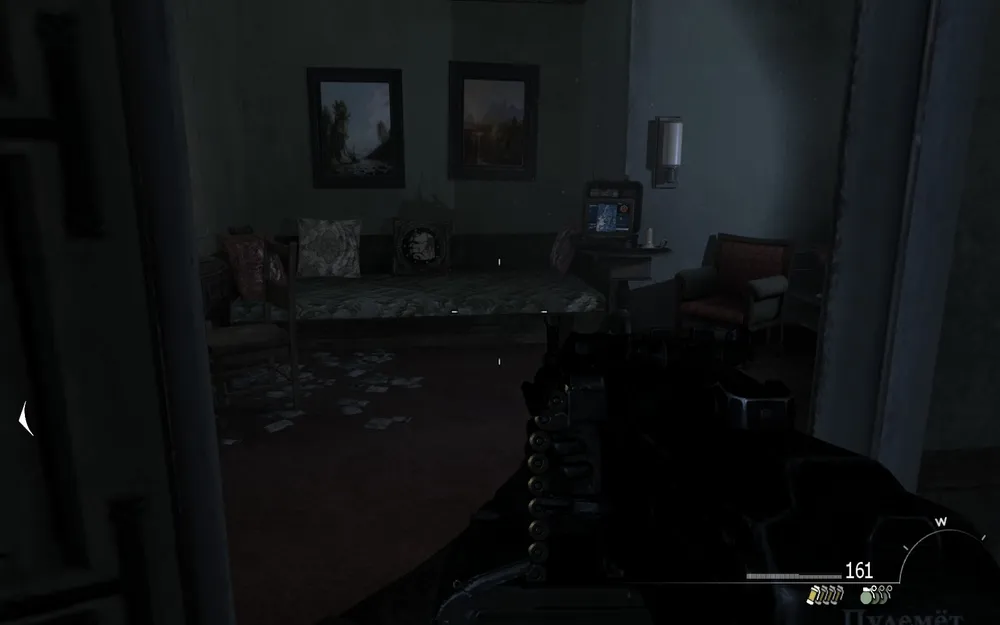 - 1. После прикрытия Прайса и Соупа с вышки, загляните в здание, в которое они заходили. В дальнем углу на стиральной машине будет компьютер.