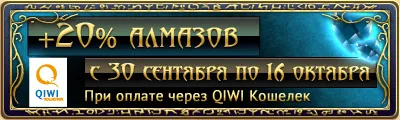 Не упустите возможность с 30 сентября получать на 20% больше алмазов, используя для оплаты QIWI Кошелек.