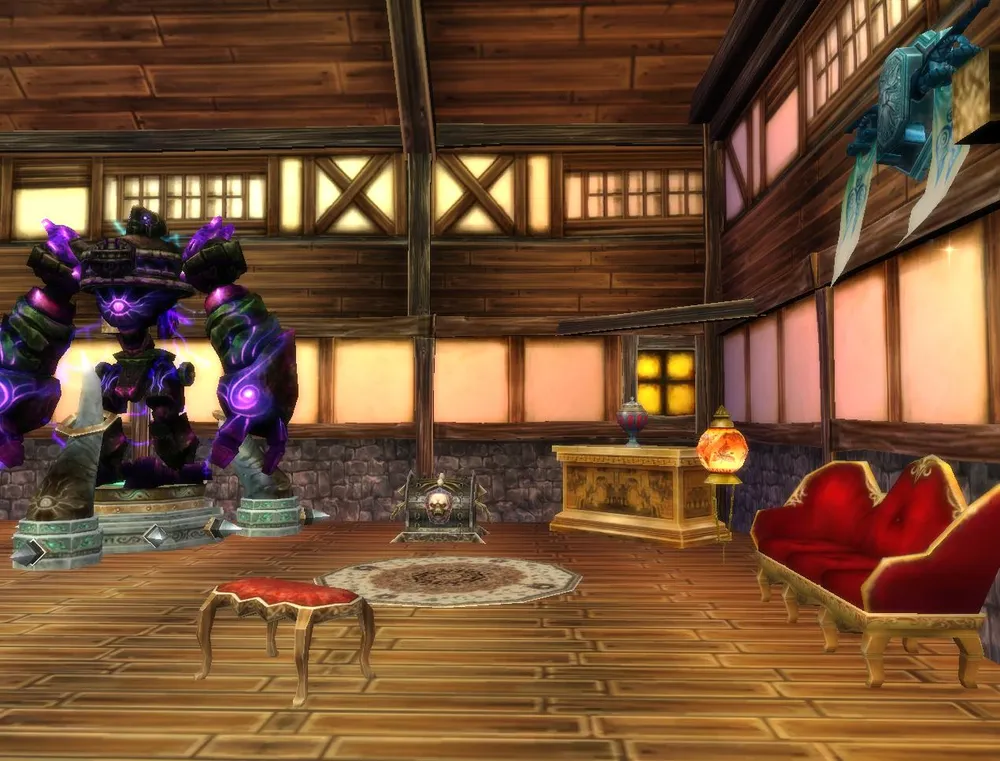 В просторной и светлой комнате вы сможете поставить различную мебель, добытые в тяжелых боях трофеи, декоративные сувениры, цветы и многое другое. Возможности игры позволяют создать из своего дома настоящий шедевр интерьера. И желание возвращаться в свой уютный уголок будет посещать гораздо чаще, и друзья будут напрашиваться в гости на чашку чая. И только от вас будет зависеть, кто сможет заходить в ваш дом: от нежелательных гостей можно запечатать двери раз и навсегда, а товарищам из гильдии и друзьям предоставить свободный вход.
