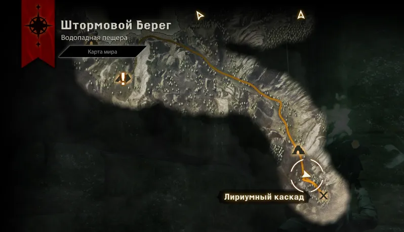 - * Штормовой берег, пещера Лириумный каскад (у истоков Длинной реки, там ещё будет квест касаемо Порождений тьмы). Жаровня в самом конце, руна будет в одном из закутков по правую руку, если идти к выходу.