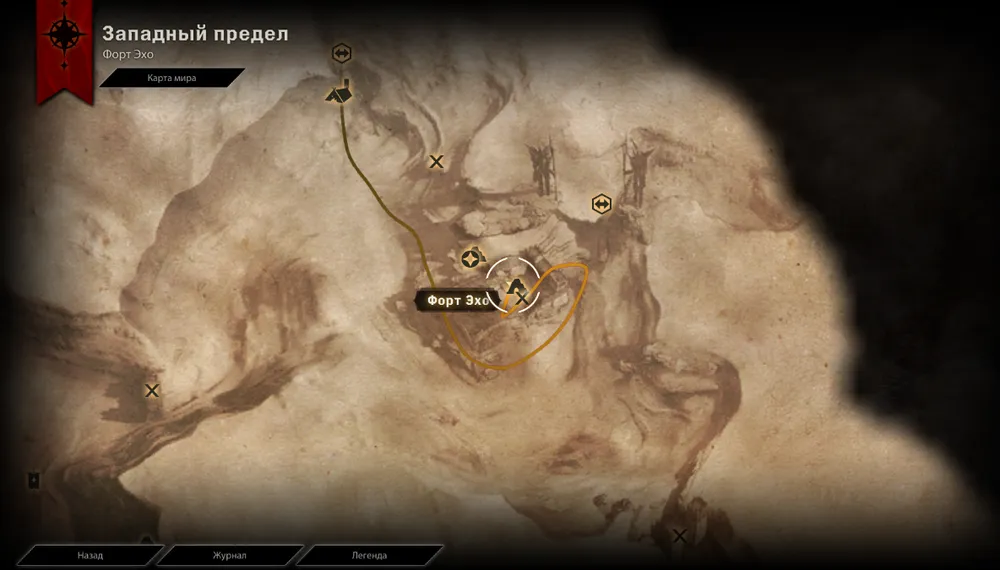 * Западный предел, форт Эхо. Завесный огонь находится в алькове в углу, сама руна – в начале тоннеля слева на пути к Астариуму.