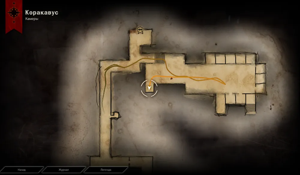* Западный предел, тюрьма Коракавус. Если идти со стороны астариума (а не со стороны лагеря), сразу за входом будет проход в тюрьму. Жаровня в самом конце, руна в одной из камер, если стоять лицом в выходу – по левую сторону.