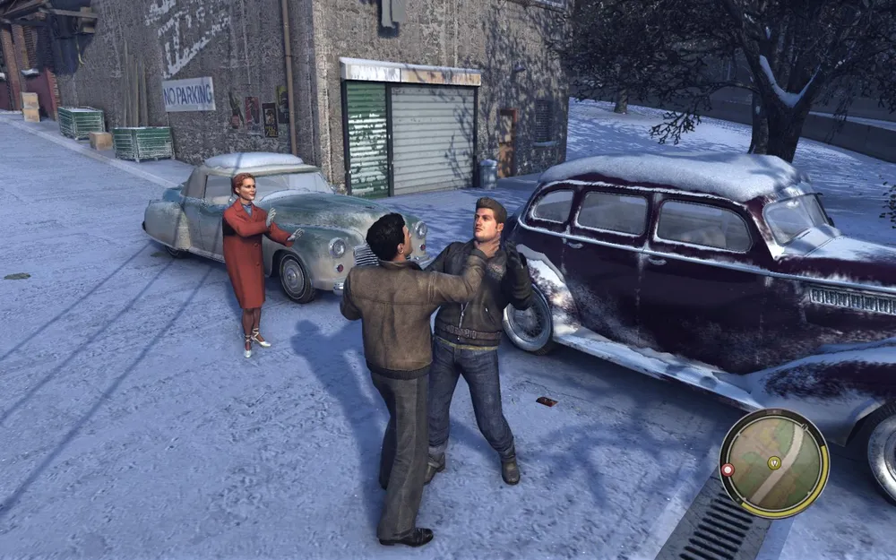 Весь сюжет показан при помощи скриптовых роликов, но при этом подан так невыразительно, что все персонажи кроме Джо и, разве что, Генри, вылетают из головы, так и не задержавшись в ней ни на секунду. Первые задания по своему обыкновению нудные – пойди, найди и принеси. Правда и далее они мало чем отличаются от первых – пойди, найди и убей. Мафиозные лидеры попадающие вам на глаза не вызывают никакого уважения, к тому же на вид они мало чем отличающиеся от простых игровых болванчиков, которых в городе пруд пруди. Разве что лица не повторяются, да и одёжка слегка получше «средней по городу». Вспомните фильмы про мафию – там каждая собака знала и боялась таких людей, но в этой игре их никто не знает и никак на их присутствие не реагирует. Войдя в «Семью», жизнь Вито никоим образом не меняется – как был пацаном на подхвате, так им же и остаётся на протяжении всей игры.