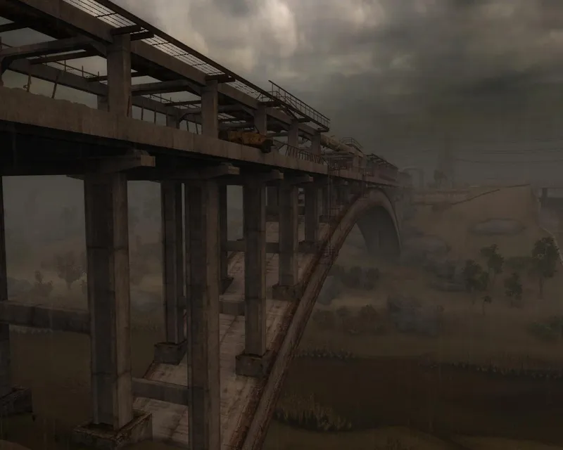 Огромный мост, усеянный аномалиями, на котором народится военная колона перевозящая секретные армейские разработки...
