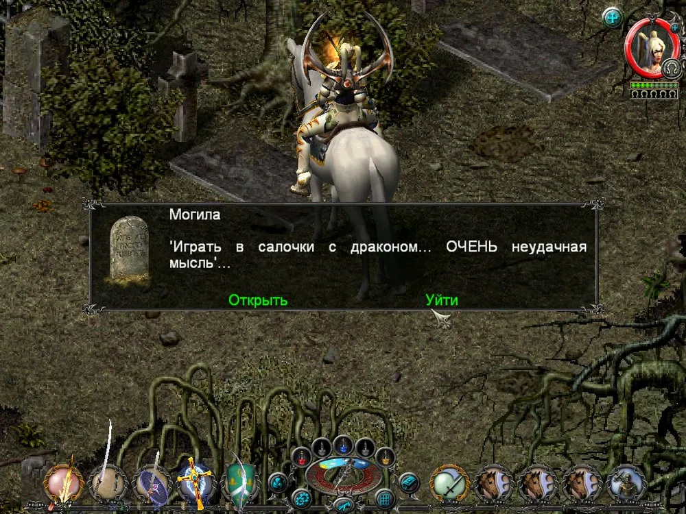Одним из отличий Sacred является большое количество различных надписей: шутливых, серьёзных, информативных. Большинство из них представляют собой эпитафии на могильных камнях, чуть реже послания высечены на камнях рунных. Я взял на себя труд познакомить вас с некоторыми из них; а также - с отдельными забавными моментами.