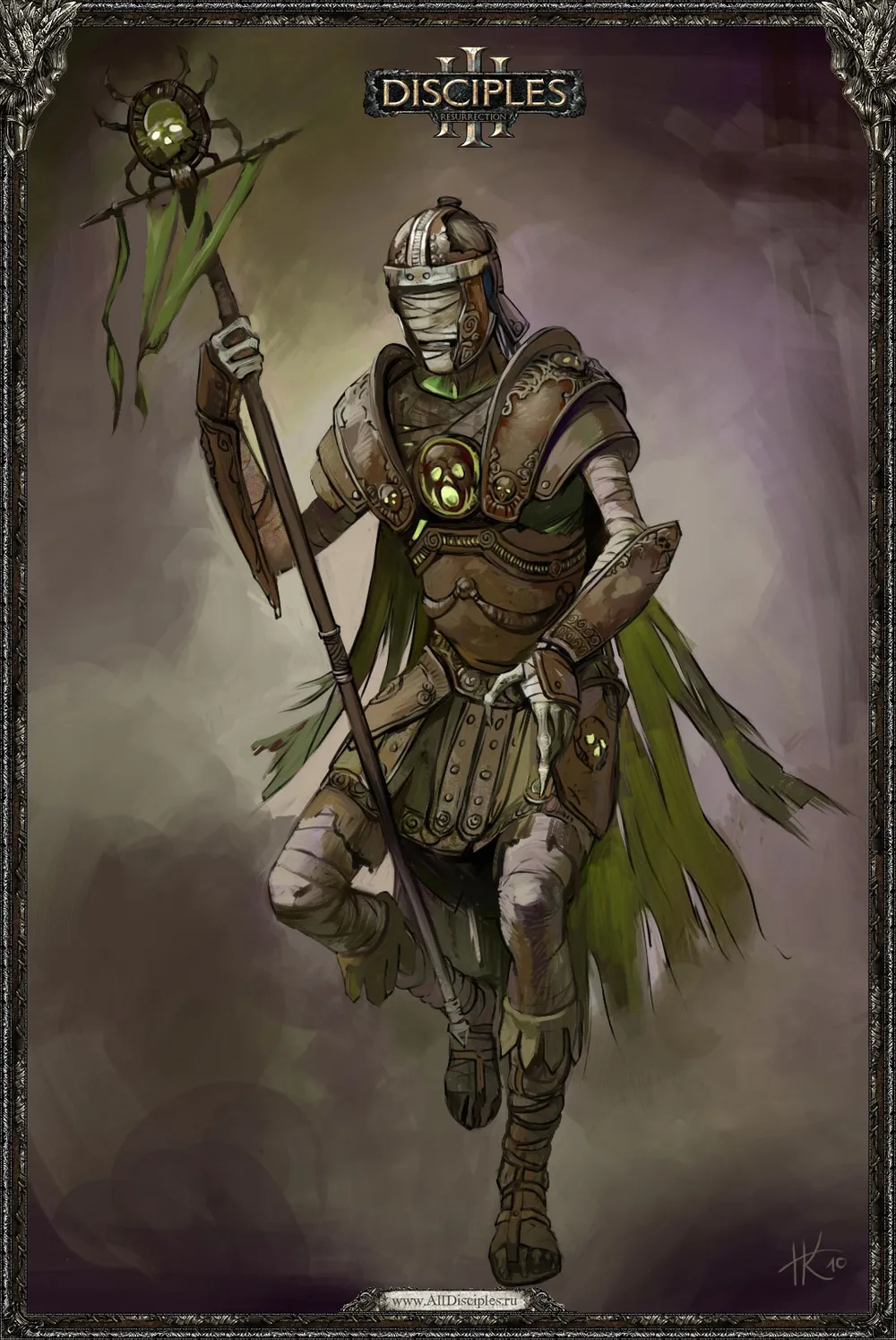 "Первый воитель Алкмаара был поднят Мортис в час нужды. Еще во времена до падения Бетрезена Салаар отчаянно сражался за свой народ, снискав славу великого полководца. Самоотверженный защитник при жизни, и в смерти он сохранил великодушие и благородство. Однако изувеченная перерождением память Салаара молчала могильной плитой."