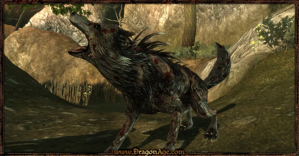 «Репутацию, которой волки пользуются в Ферелдене, не назовешь заслуженной и справедливой. Народ, обожающий собак, настолько подозрительно относится к волкам, что это выглядит неразумным. Однако так могут думать лишь те, кто не знаком со старинными легендами об оборотнях. В истории Ферелдена были времена, когда демоны в больших количествах вселялись в тела волков и затевали войны с людьми, распространяя страх и панику. Оборотней истребили, однако мы и по сей день с недоверием относимся к благородным животным»