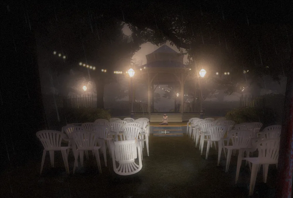 Готово было практически все. Стулья стояли рядками, обращенными к беседке, где жених и невеста должны были произнести свои клятвы и вступить в брак, фонари зажжены, еда готова и уже была частично подъедена, музыка играет, цветы вплетены и расставлены, и даже папа уже мирно посапывал на одном из стульев. Не хватало только одной детали.