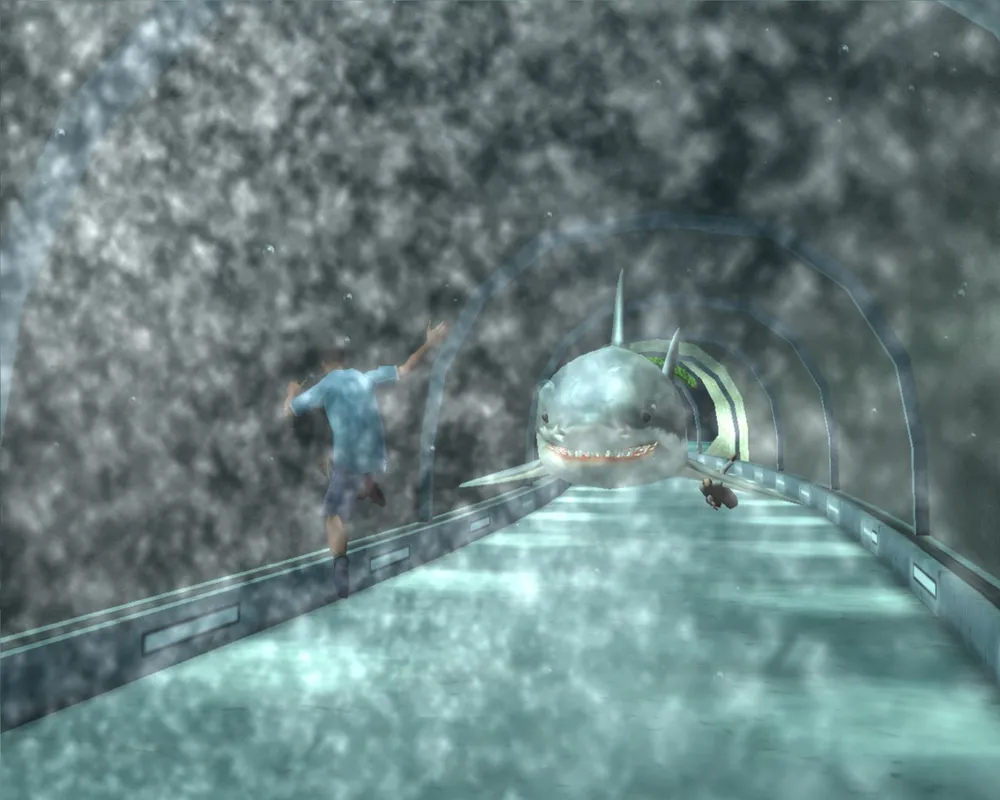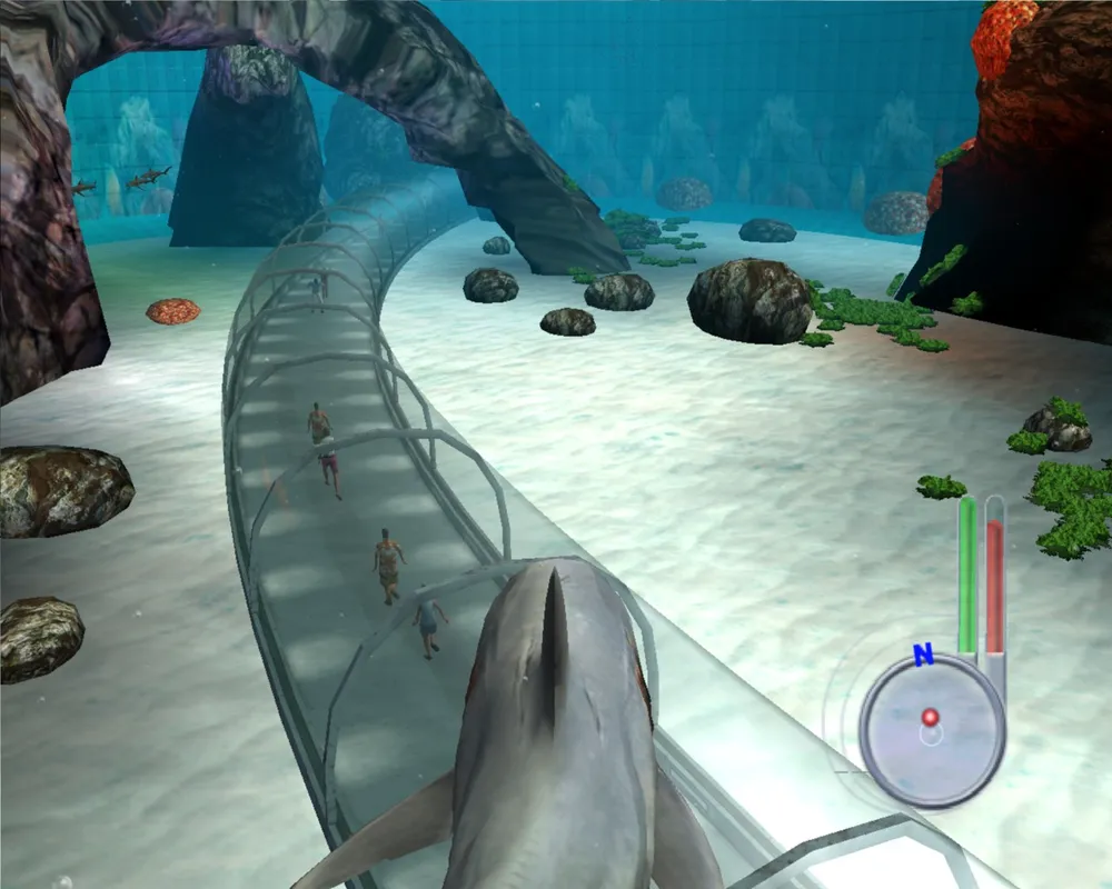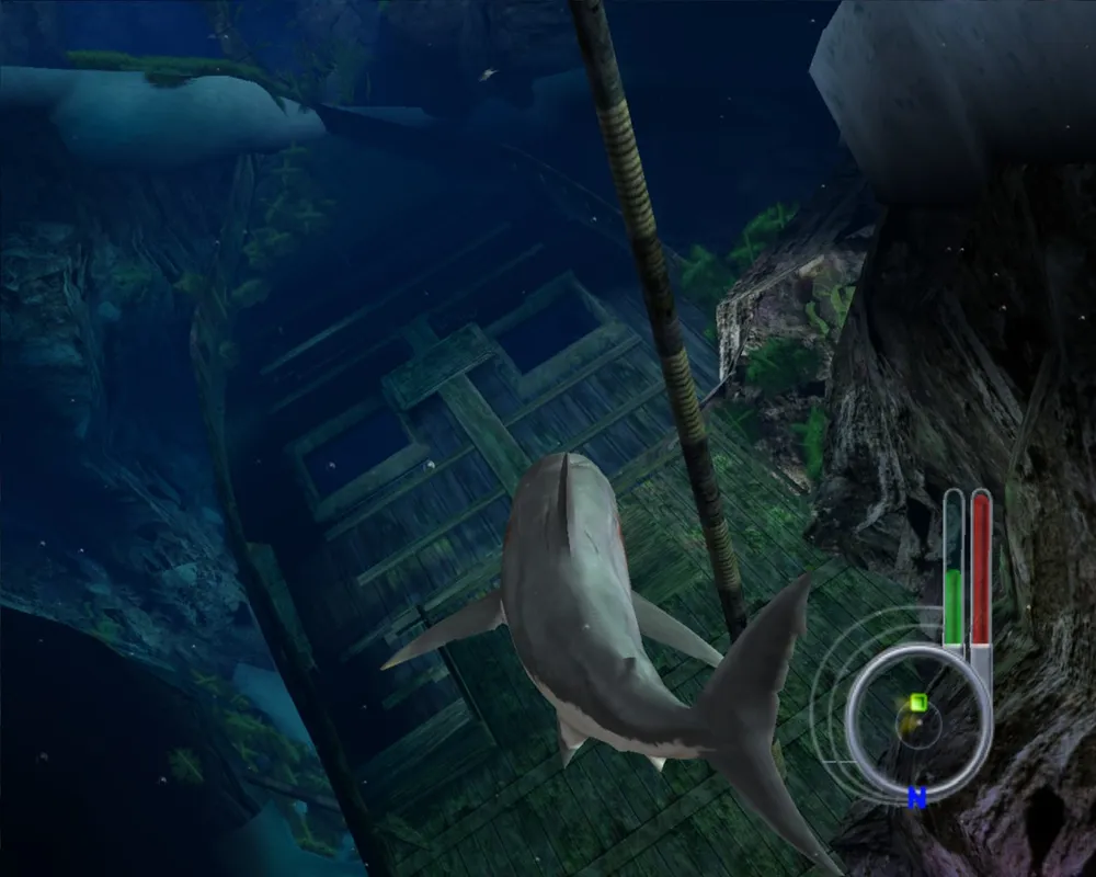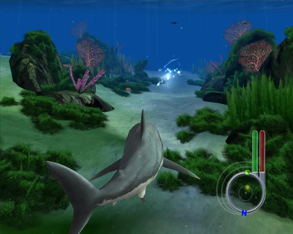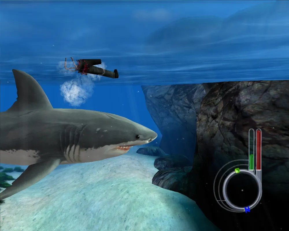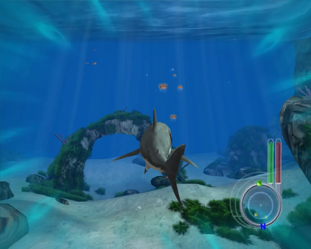 В этой игре нам нужно играть за акулу от третьего лица, которая очень любит покушать и людей, и касаток, и дельфинов, в общем всё что ей на глаза попадётся. Ещё в Jaws unleashed очень красивый подводный мир, в котором можно найти даже затонувшие корабли:
