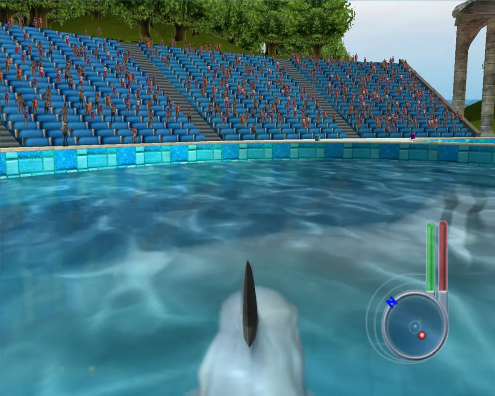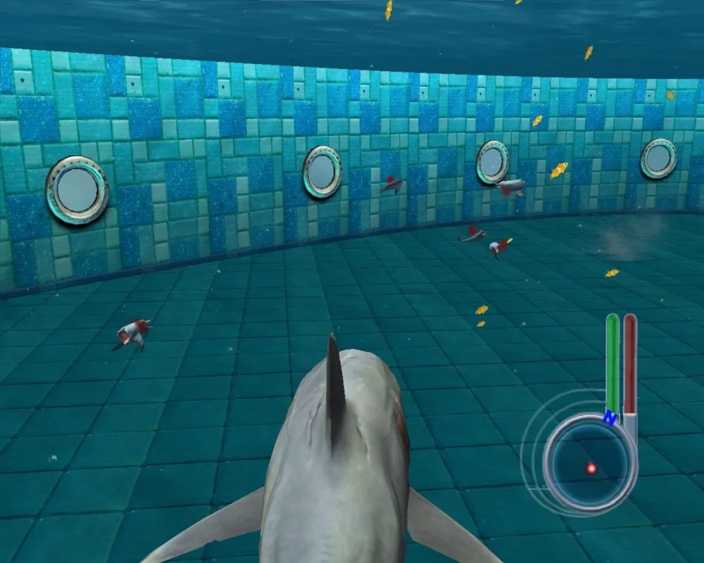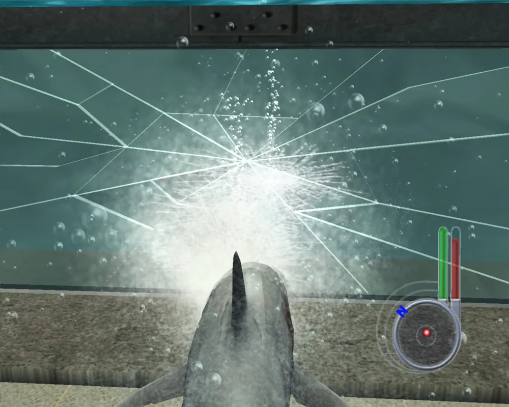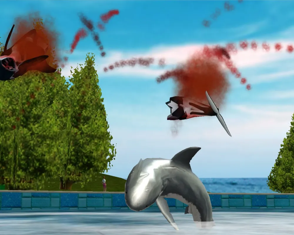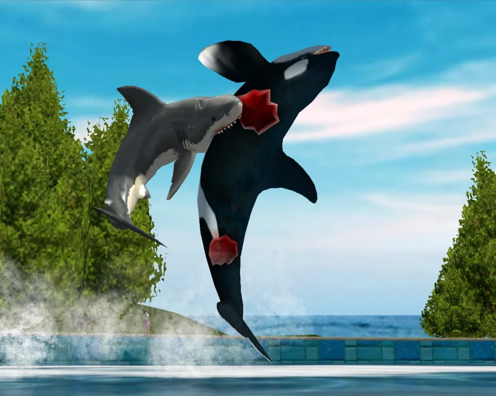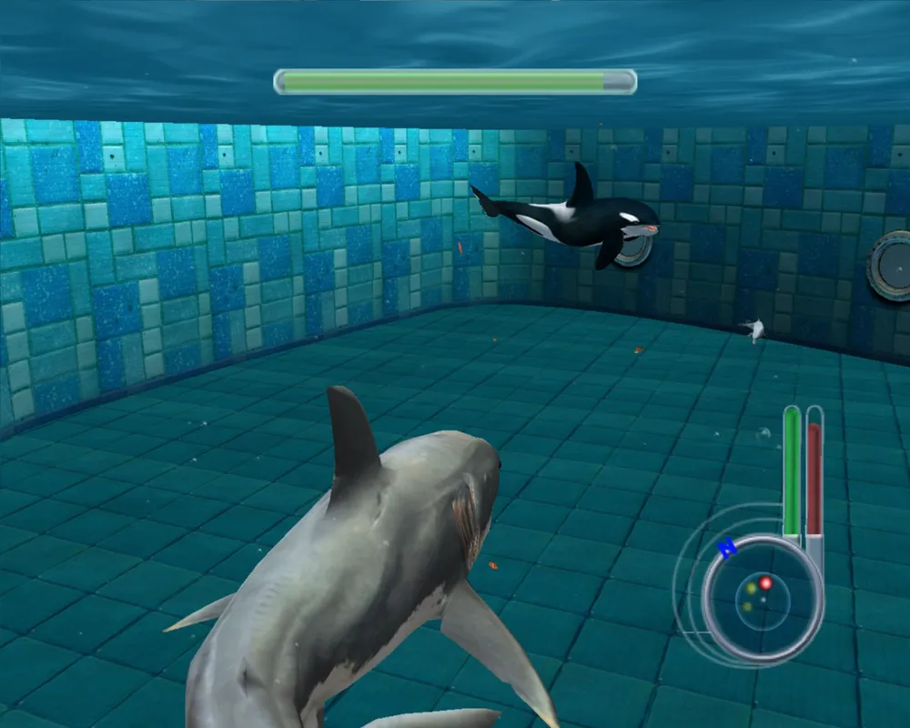 Но создатели игры засунули в дельфинарий касатку, которая тоже умеет кусаться!