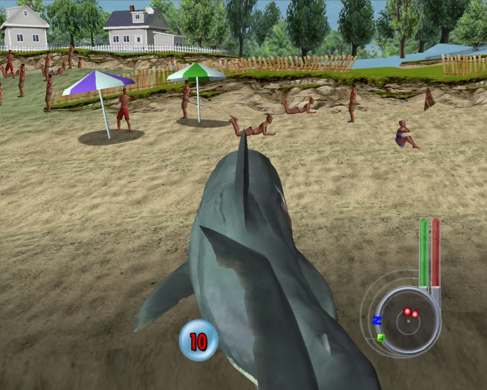 Во время прохождения обучения акула попадает на пляж, где купаются люди. Во время их поедания я пытался залезть на песок и загарать. Вот что у меня вышло: