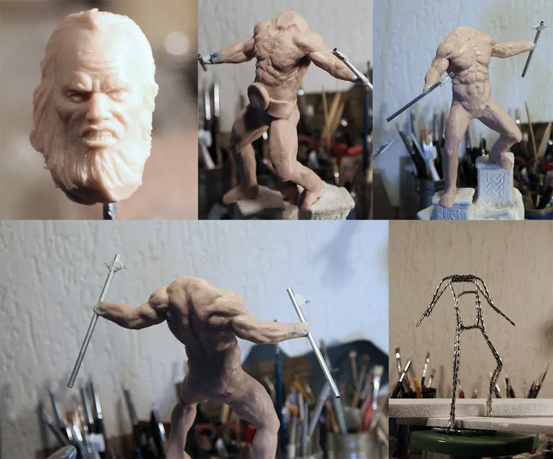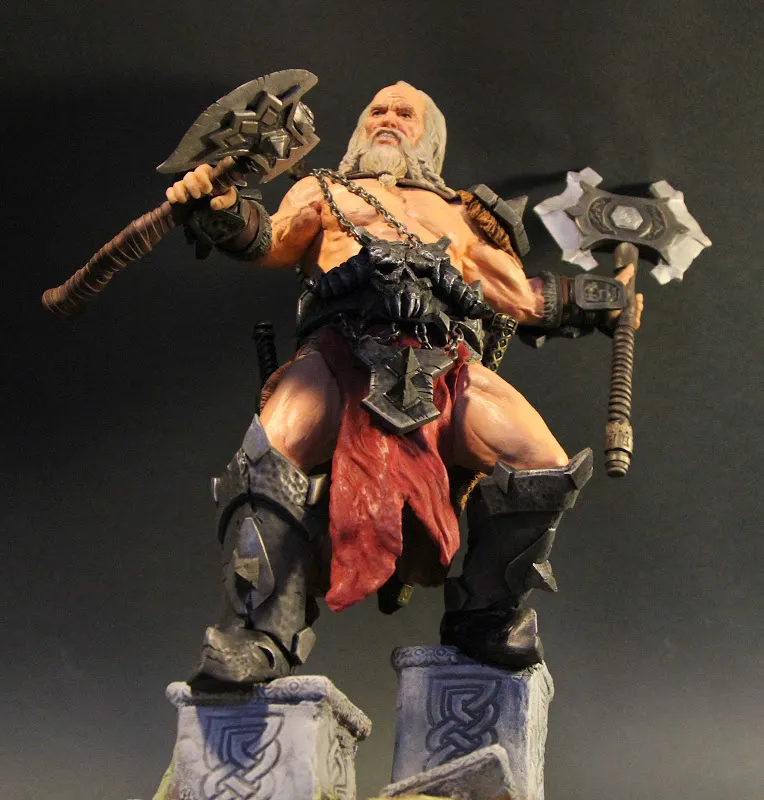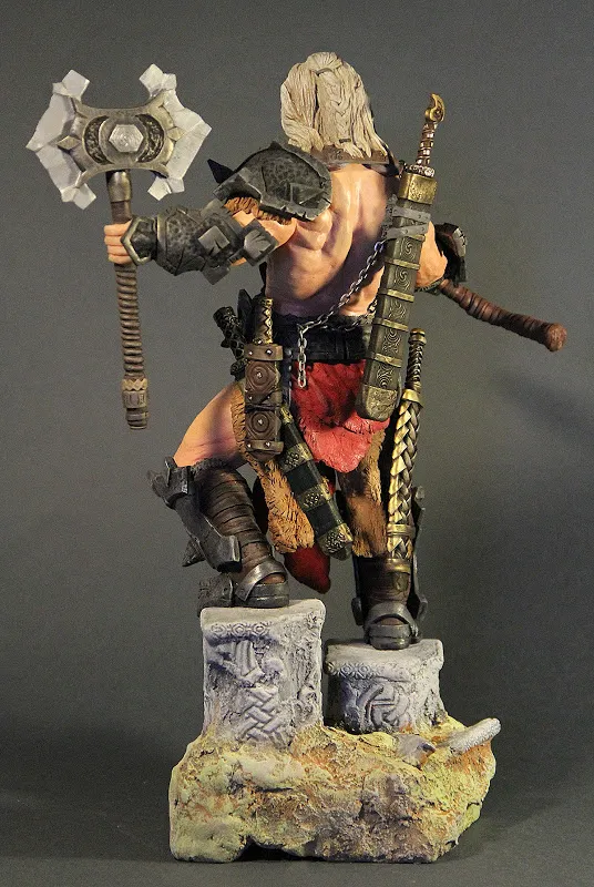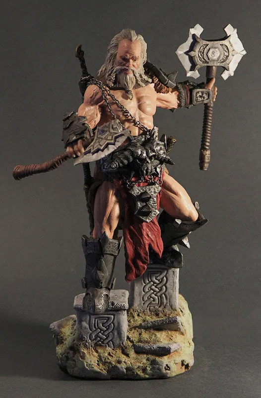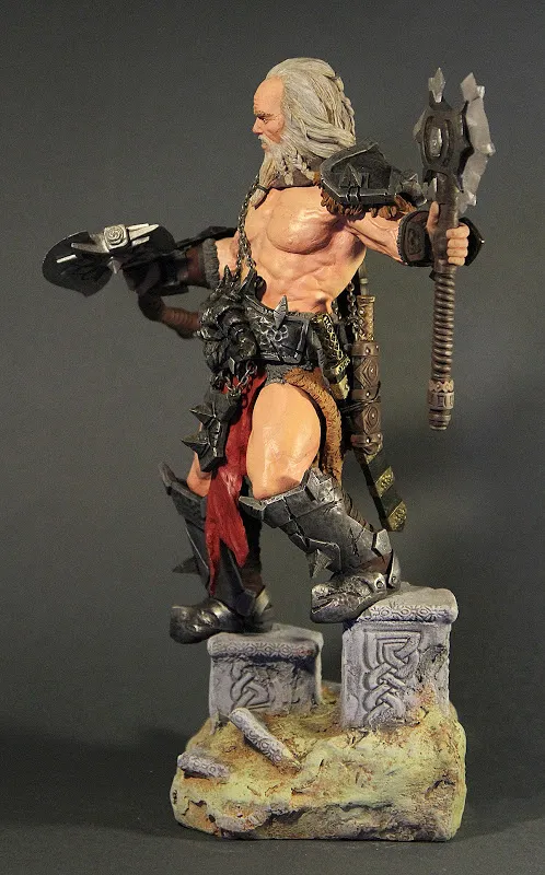 Суровый Варвар из полимерной глины. Раскрашен акриловыми красками. Высота без базы: 28 см.