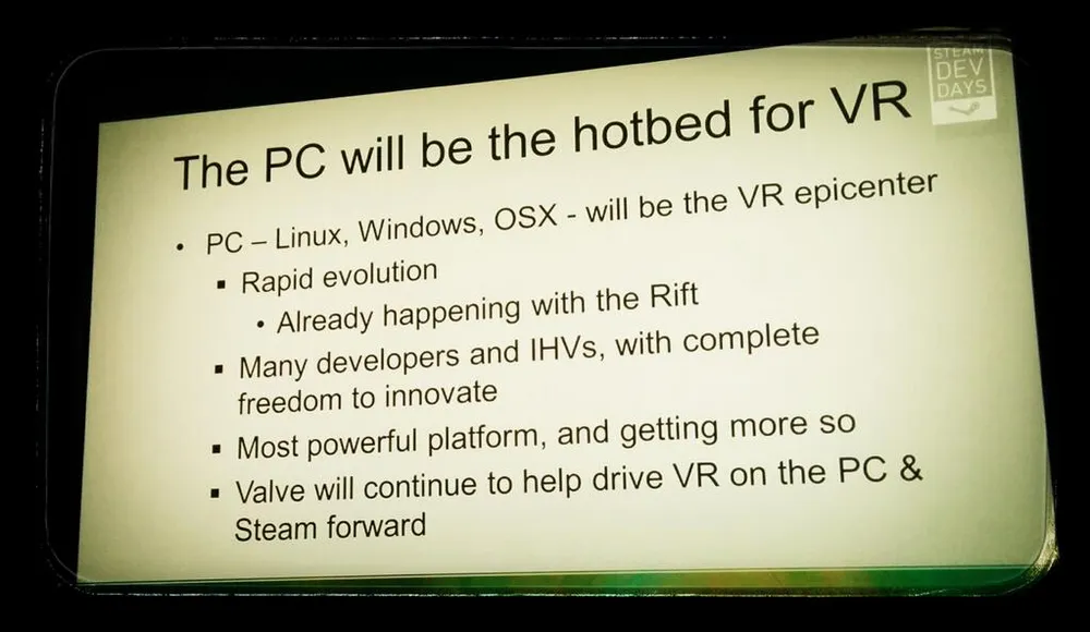 — На данный момент Valve не имеют в своих планах выпуск своего устройства виртуальной реальности но это может поменяться;