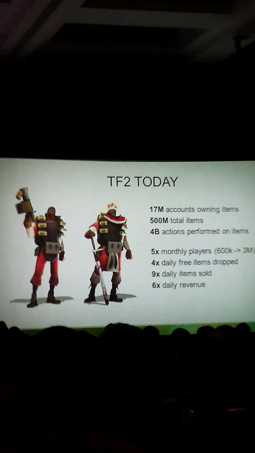 — Статистика Team Fortress 2: предметы есть на 17 000 000 аккаунтов, всего предметов 500 000 000, совершено 4 000 000 000 обменов, с 1 067 399 аккаунтов хоть раз отсылали подарок, 1 841 051 аккаунт хотя бы раз получал подарок;