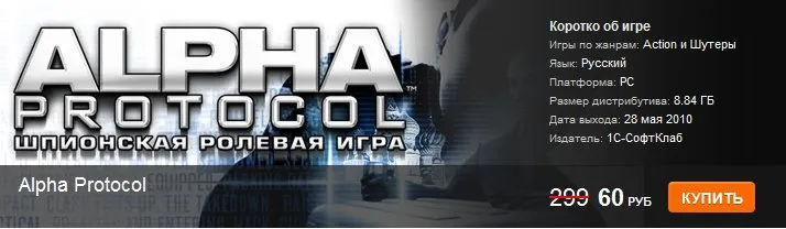 Скидка дня – 13 февраля: Alpha Protocol – 60 рублей (-80%).