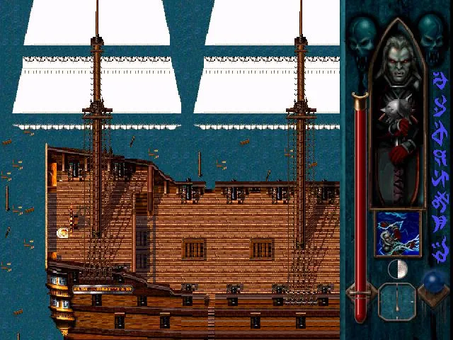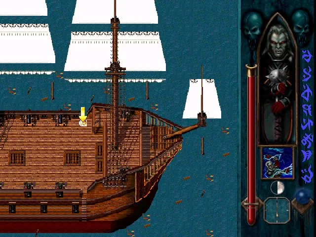 Потому что портал в здании ведет не куда-нибудь? а на самый настоящий корабль. С пушками, мачтами и пиратами на палубе. Надпись на борту гласит, что это H.M.C.S.(Her Majesty’s Canadian Ship – здесь явно аллюзия на то, что контора Silicon Knights, разработчиков Blood Omen, расположена в Онтарио) Bitter