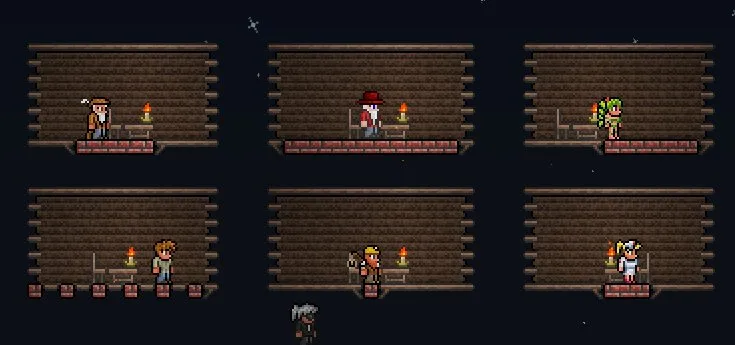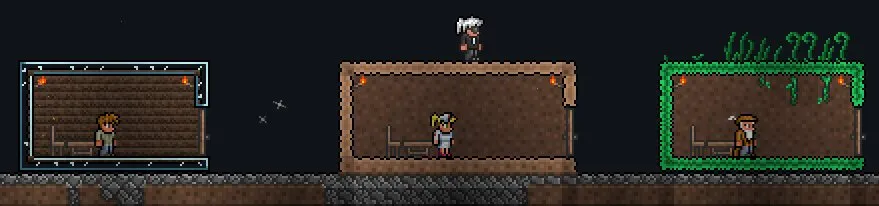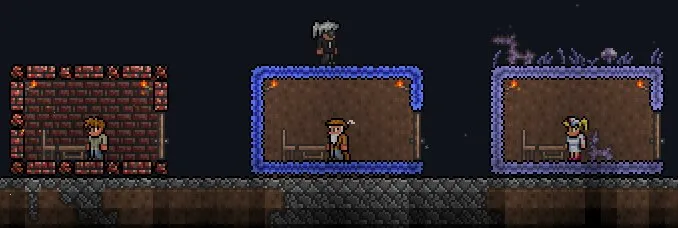 Чаще всего игроки строят дома для НИПов из кирпича или камня, но на самом деле сгодятся дома почти что из любых блоков. До патча 1.0.6 НИПы не хотели жить в домах из земли и из блоков dungeon, но теперь уже согласны и на это при условии, что стены поставлены вами.