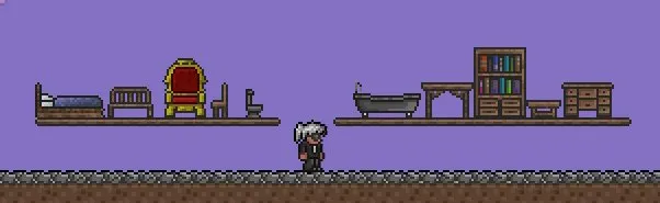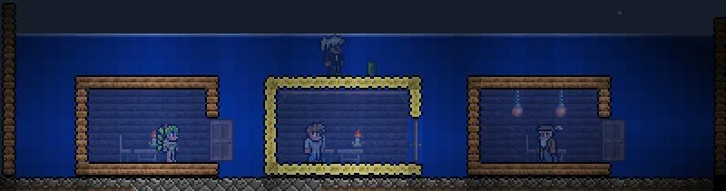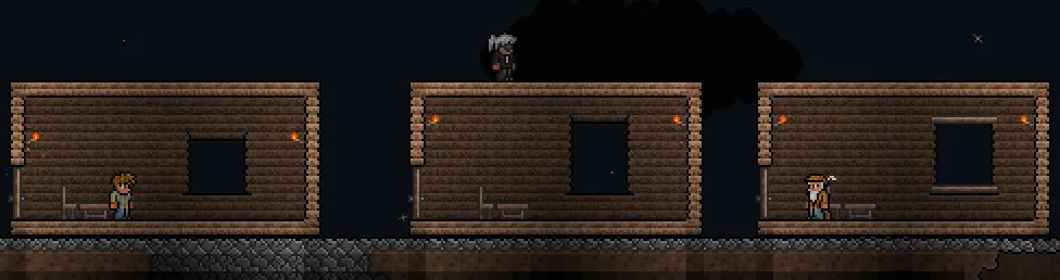 Сначала я построил очень высокий дом шириной в три клетки, там как раз поместились стул и верстак, но в него никто не заселился. Тогда я стал постепенно расширять дом до тех пор, пока на шести клетках в ширину не пришел торговец оружием. Следовательно, минимальная ширина дома для НИПа равна 6 клеткам.