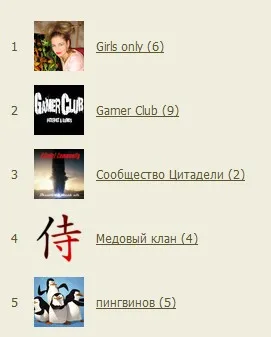 В конфликте приняли участие 32 клана - всего более 230 человек. Пятерка лидеров в рейтинге боевой славы выглядит так: