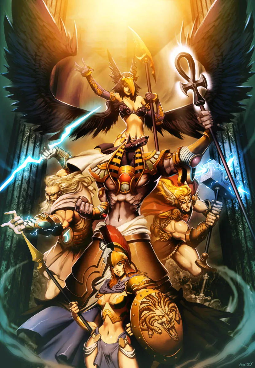 Боги (Морриган, Зевс, Анубис, Афина и Тор)