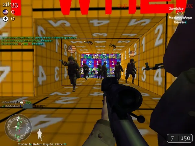 В Call of Duty 2 появились новые сервера. Но там уже ни немцы и русские,там Хантеры(охотники) и зомби(вместо немцев).Скажу я вам охренительные карты там есть! иплюсы и минусы есть у каждой стороны этих команд! Во-первых Хантеры могут стрелять, под водой их можно убить только башем по ногам. Но у зумов сразу говорю_почти одни минусы: Во-первых они не могут стрелять-то есть у них нет потронов, Во-вторых при новом раунде появляется один зум либо это тот кто последний зашел на серв либо это последний здохнувший хантер. Вот вам пара серверов если вам вдруг стало интересно: [Zom]+[MoD] , [FG]Zombies , UG Zombies ,Dark Zom , Rus Zom , ну и достаточно! Хочется сразу предупредить карты качаются по 5-10 минут. на некоторых сервеках со снайперкой не всегда удобно работать, но на [ZoM]+[MoD] выстрел в голову всегда смертельный=))). на всех других серверах только после второго выстрела в голову=(( это неудобно потому что зум всегда успевает убежать так что лучше иногда брать калаш или семи зарядную дробь! ну и последнее любителем багов: там их очень много и можно даже найти друзей по этому делу и лазить глитчем=)) так же на таких серверах можно беспрепятственно играть валхаком=))для других видов читов например момбот идет бан!!!