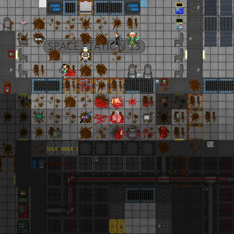 Но если есть англоязычный грифо-сервер, то должен быть и ролевой сервер. Так была создана Baystation12. Она уникальна не только ролевым направлением и жесткими правилами но и уникальными разработками. К примеру, здесь очень реалистично создана откачка атмосферы в космос. Даже открытый шлюз становился опасным, очень много новичков было забанено навечно из-за этой оплошности. Другая особенность - это не станция, а космический корабль, на котором несколько палуб. Одна палуба для инженеров с темными закоулками техтоннелей, другая для руководства. Из других особенностей - другая механика повреждений, следы на ботинках от крови и прочее.