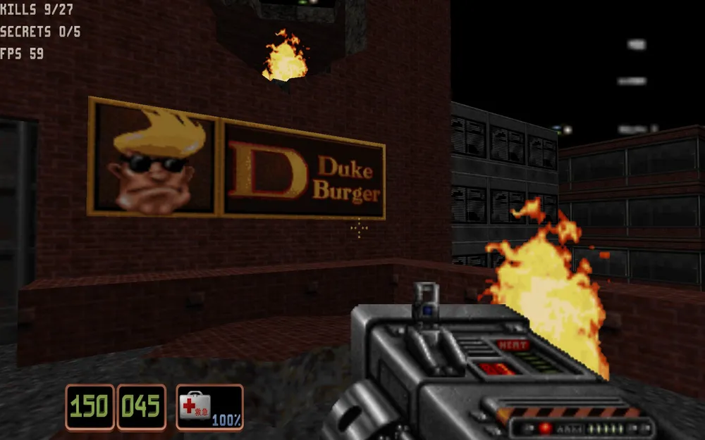 Немалый вклад во славу 2.5D экшенов привнёс программист Кен Сильверман – автор известного движка, который незамысловато был им назван Build Engine. Именно на этом движке разработчики студии Apogee Software (уже обновившие вывеску как 3D Realms) решили сделать третью игру про приключения блондина Дюка Нюкема. Только если раньше он был героем плоского платформера, то в третьей части эффектно перебрался в три измерения при помощи движка Build EngineDuke Nukem 3D. И попутно приобрёл выразительный характер.