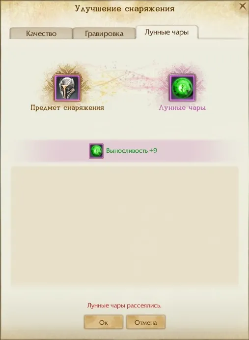 На деле, скажем откровенно, возможности эти одновременно и расширены, и заужены. Едва ли не первое, что только было замечено при ознакомлении с обновлением, это невозможность вставлять базовые руны в оружие, музыкальные инструменты и бижутерию. Зачарование оружия и щитов происходит сугубо лунными камнями (при этом броня чаруется и рунами, и лунными камнями — без ограничений). Для улучшения бижутерии (впрочем, не только ее) будет доступна гравировка, руны для которой создаются в декораторстве.