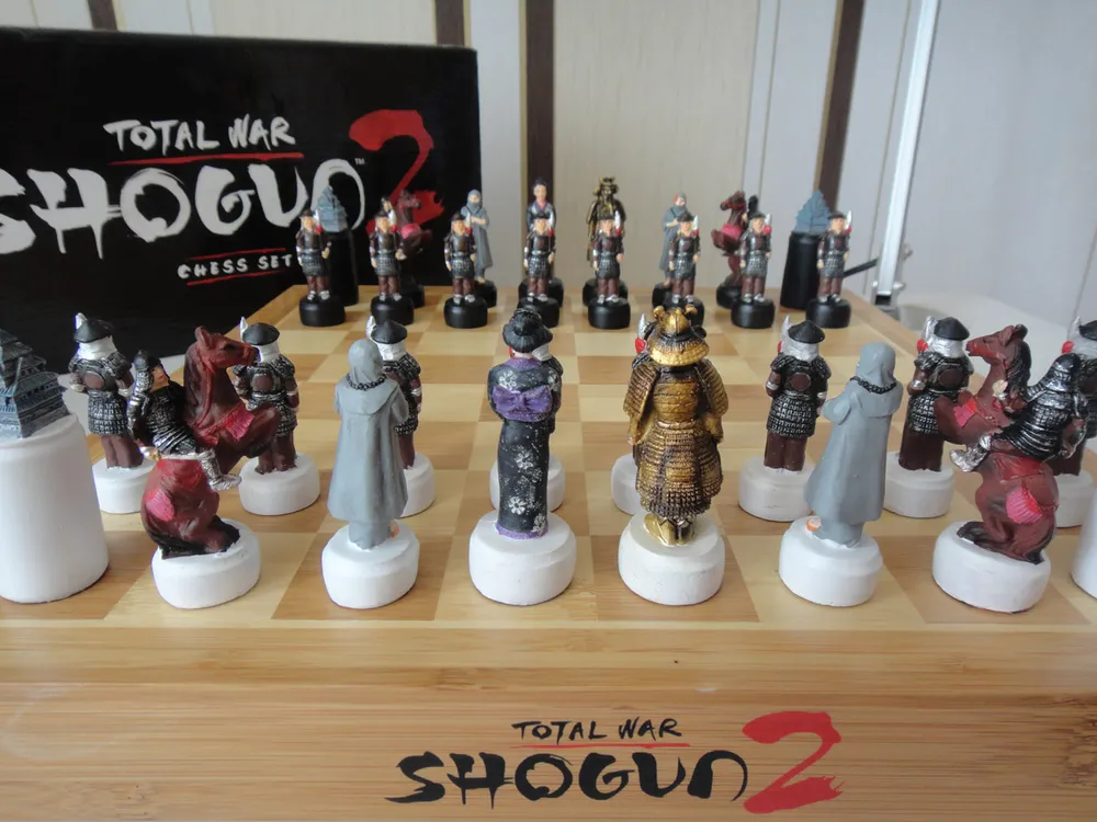 Некоторое время назад я стал счастливым обладателем коллекционного набора шахмат, забрендированного под японосамурайскую тематику. Изначально этот артефакт поставлялся исключительно в составе "гроссмейстерского" издания великолепной Total War: Shogun 2, которое можно было раздобыть только в дальних западноевропейских странах, выложив за упомянутое счастье полторы сотни евро. Понятное дело, в нашей стране такого дорогого издания не было ни в одном магазине.