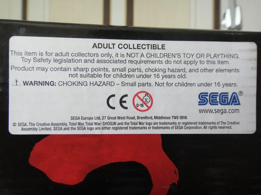 На обороте коробки наклеено сообщение о том, что коллекционные шахматы детям до 16 лет не игрушка.