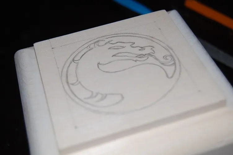 ...и при помощи малярного скотча, алмазной пилки для ногтей и такой-то матери рисунок переносится на крышку.