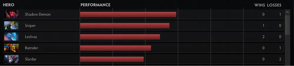 Одну вещь стоит проверить в сегодняшнем обновлении новый раздел Рейтинг Результативности Героев в профиле Dota. Твои результаты показывают, как хорошо ты играешь каждым героем по сравнению с другими игроками твоего уровня мастерства.